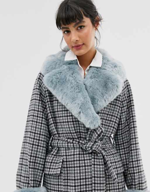 Product Name: Check coat fur collar discount