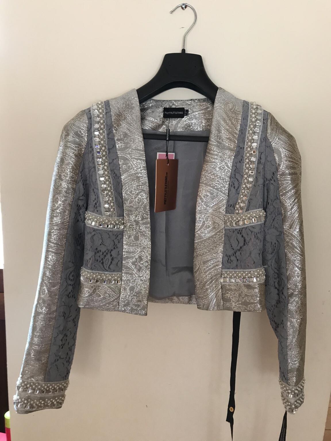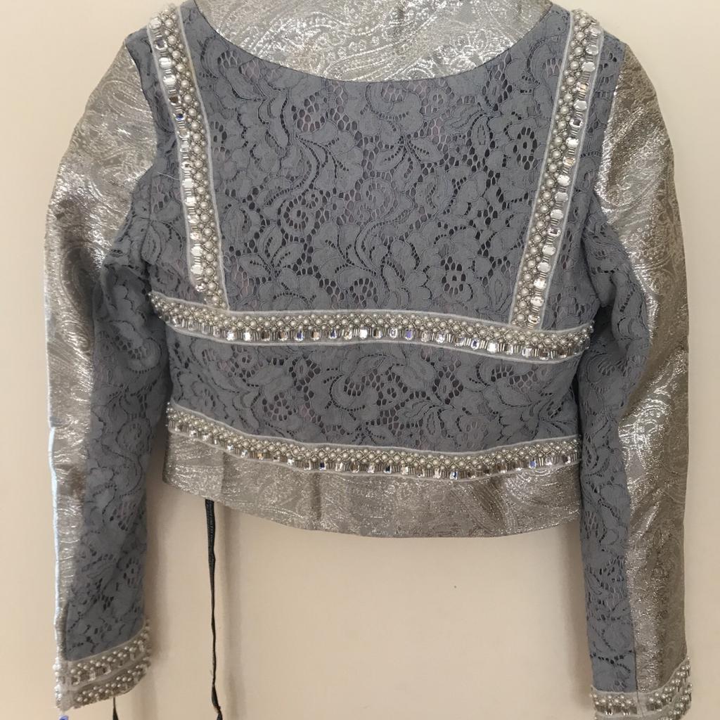 Product Name: Kemmi pale blue jacquard lace cropped jacket discount