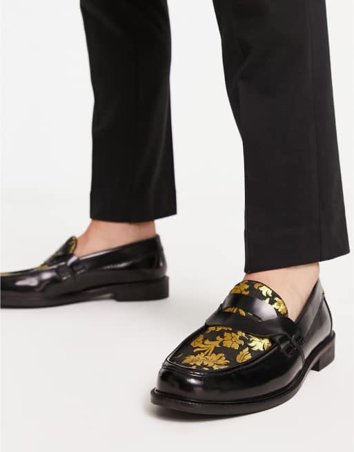 Product Name: Mens black and gold loafers discount