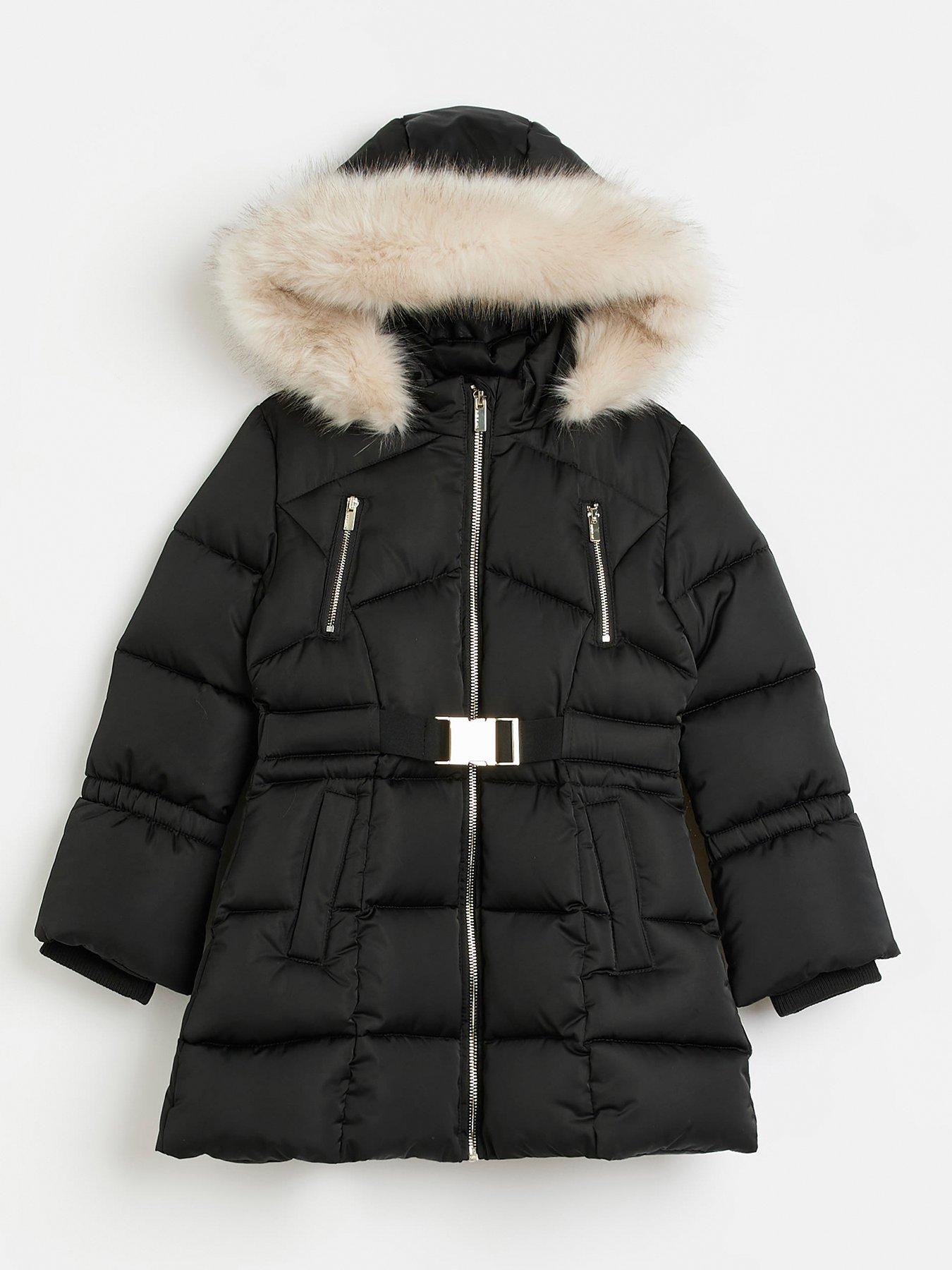 Product Name: Mini girls black faux fur trim padded coat discount