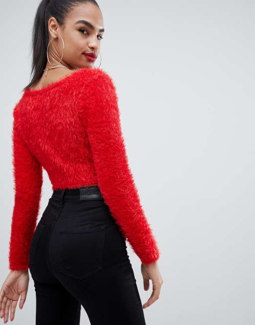 Product Name: Red fluffy cardigan discount