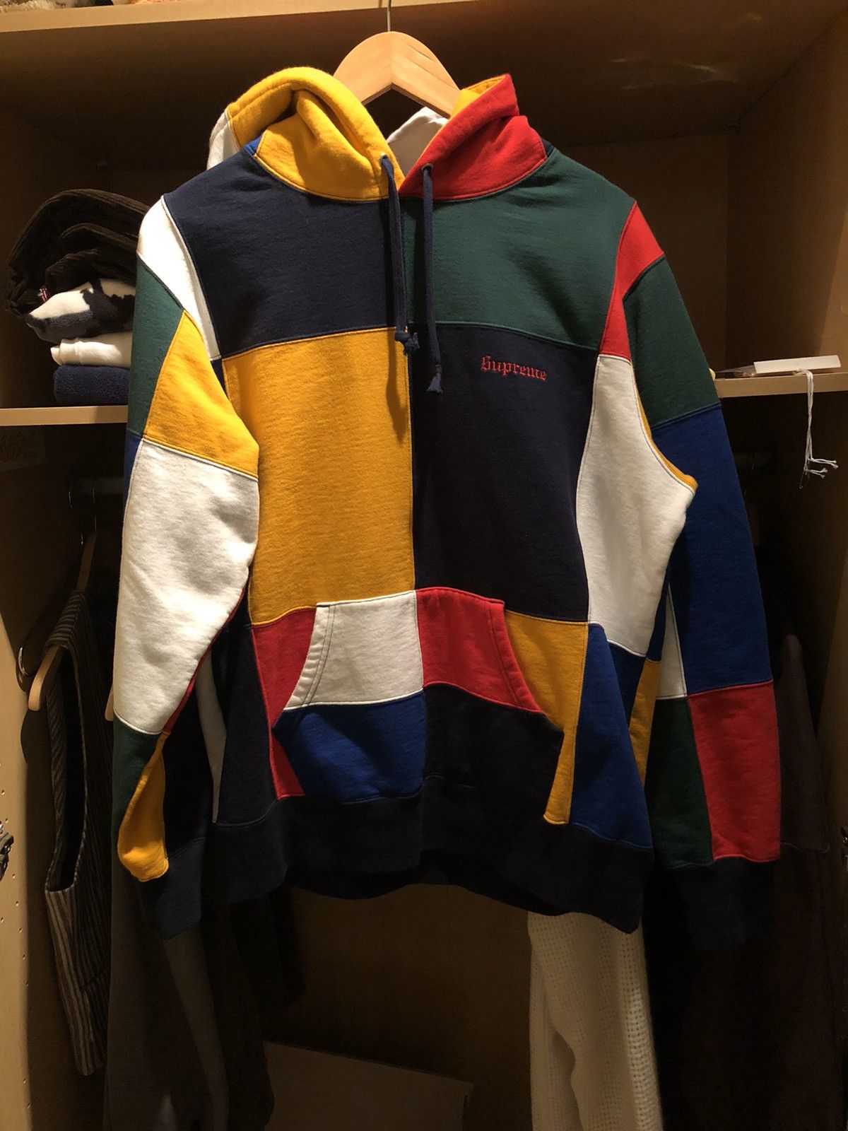 Product Name: Supreme patchwork hoodie navy discount