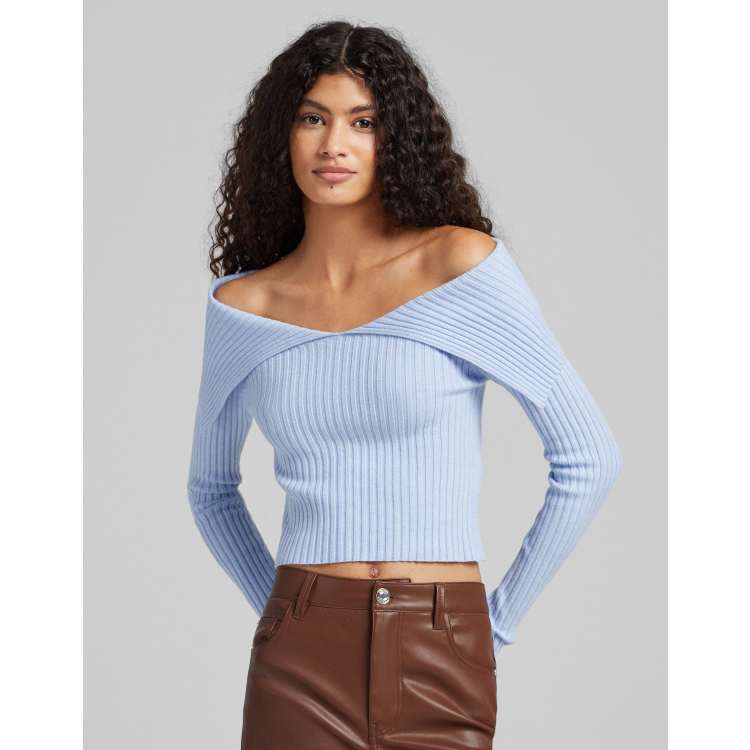 Product Name: Light blue off the shoulder sweater discount