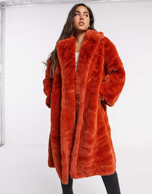 Product Name: Long red faux fur coat discount