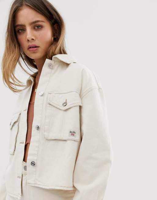 Product Name: Bershka pocket front utility denim jacket in beige discount
