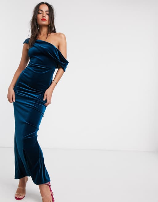 Product Name: Blue velvet off shoulder dress discount