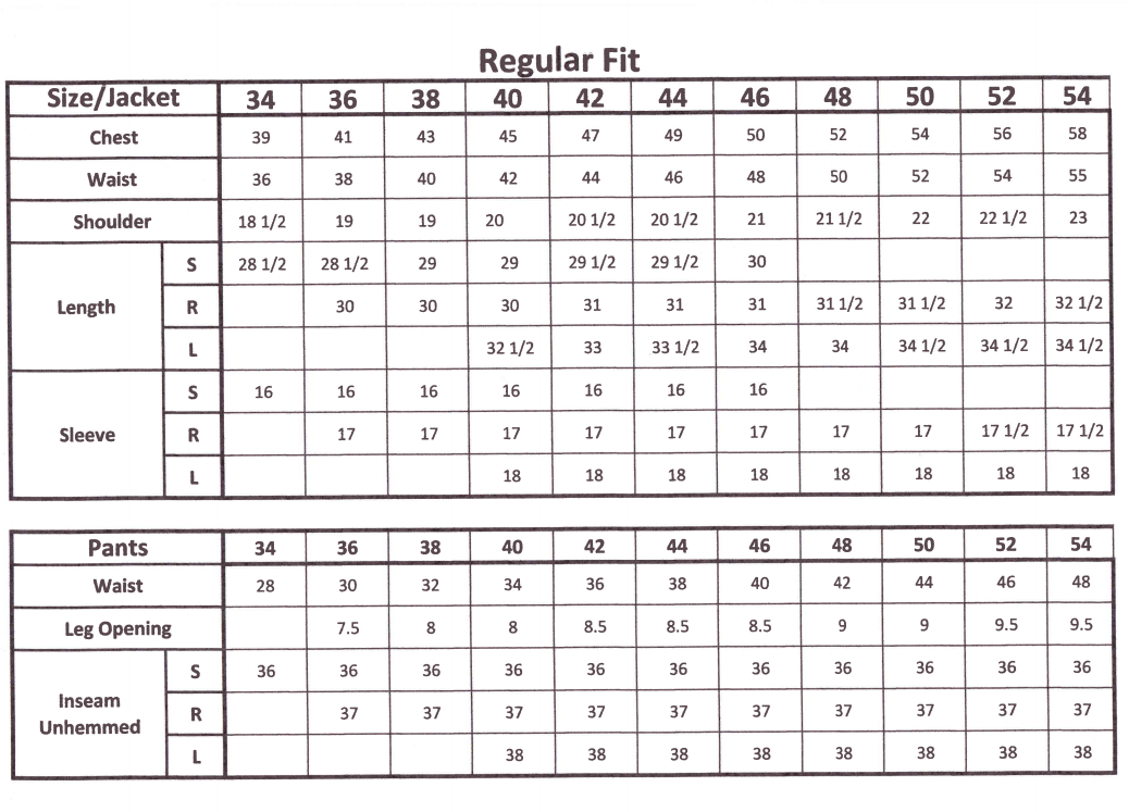 Product Name: Braveman suits size chart discount